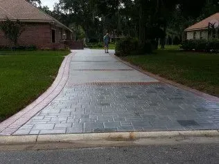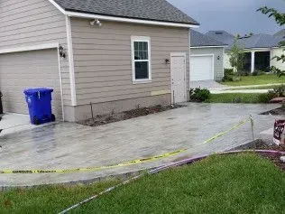 Burlington Concrete removes recently installed portico driveway by others and Installs new imprinted concrete system.
