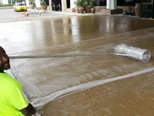 Burlington Concrete applies a Cobblestone Imprint pattern via their patented roller stamp at DoubleTree by Hiltion in Jacksonville Waterfront Hotel.